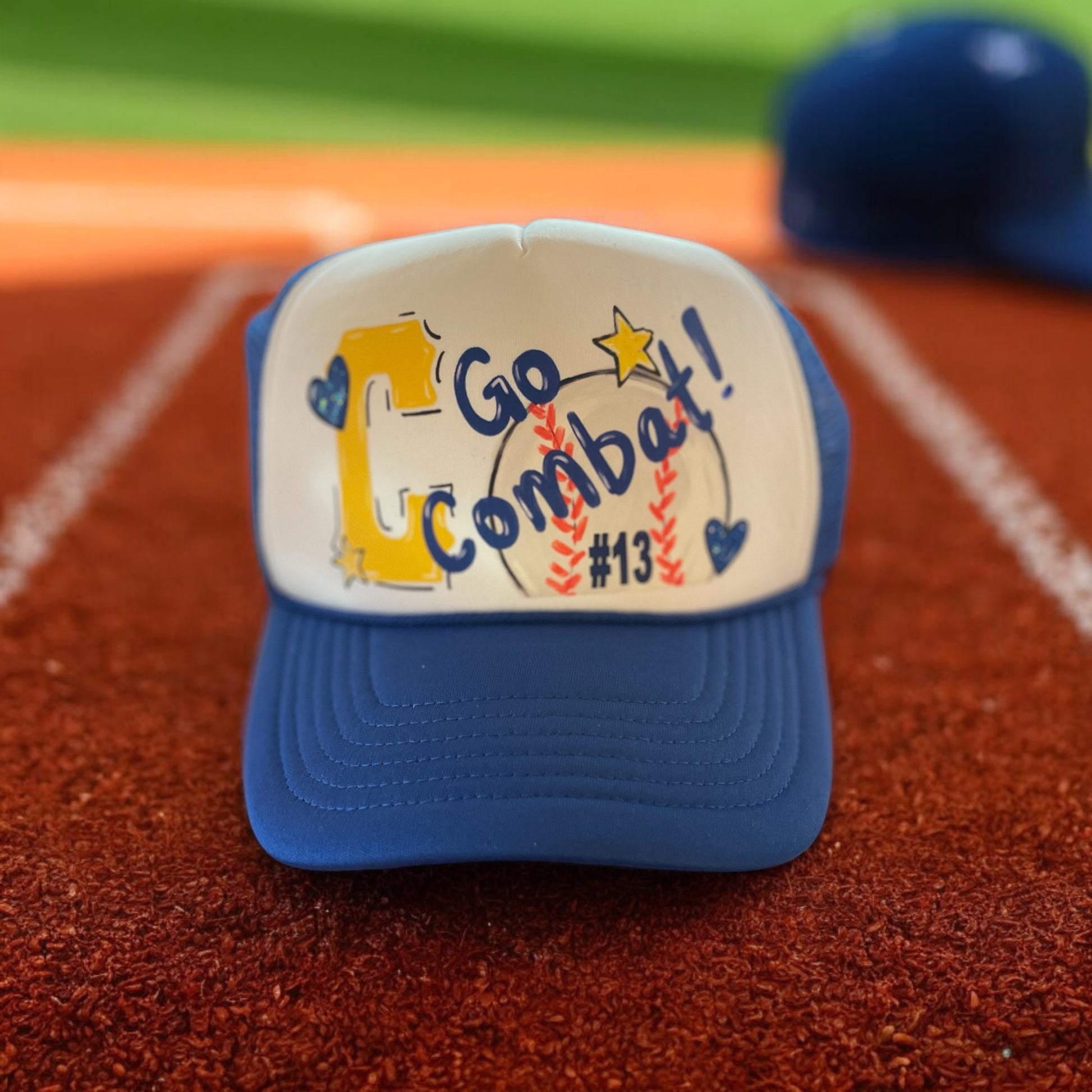 Score a home run with the Initial Baseball Trucker Hat! This royal blue mesh and bill hat features a customizable design for your favorite baseball team. With an adjustable fit, it's perfect for any fan (or player) looking to show off their team spirit in style. Game on!