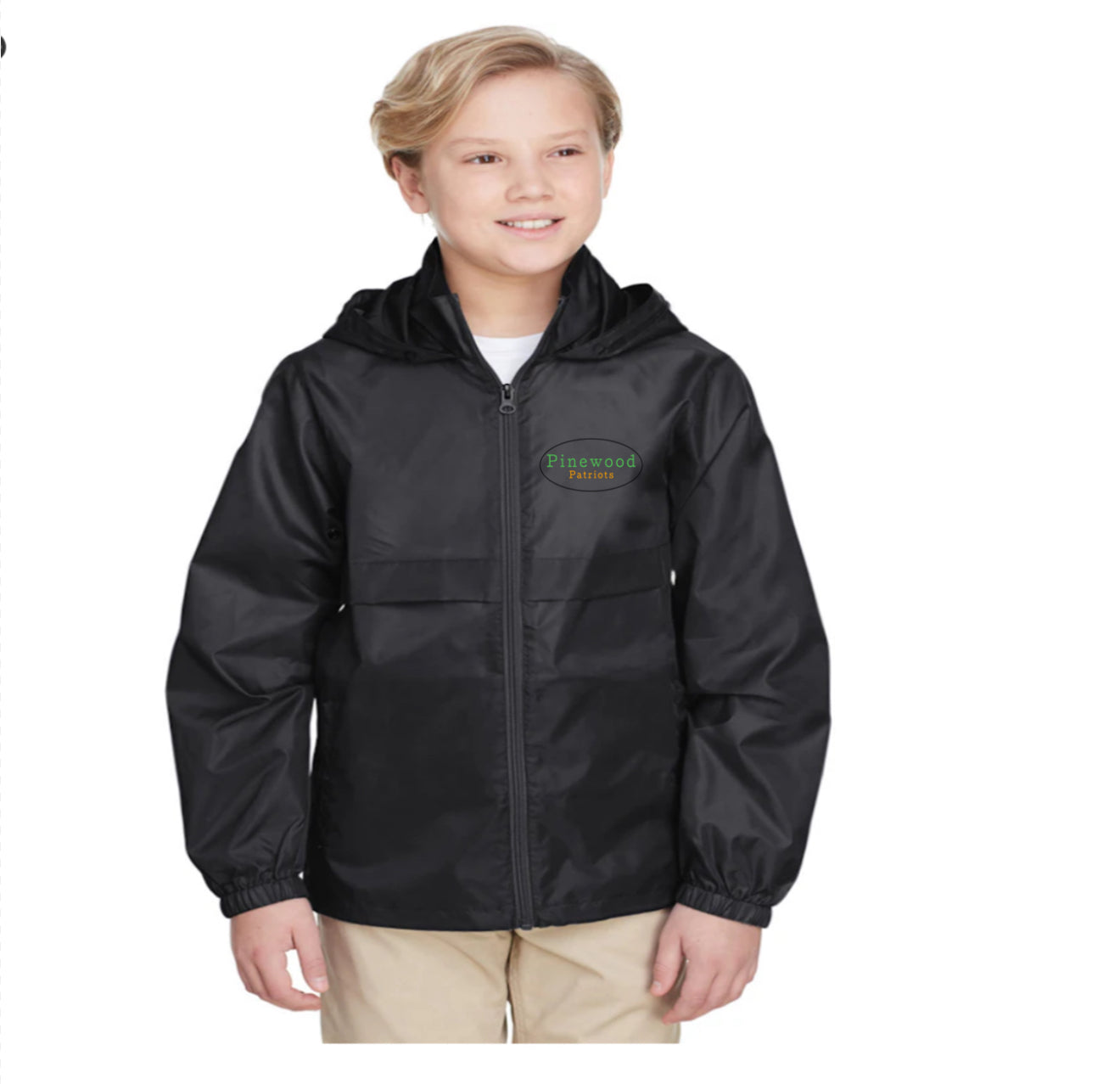 Keep your little adventurer dry and comfy with this Youth Full Zip Rain Jacket in gray. Featuring a full front zipper, handy pockets, and a snug hood, it’s perfect for splashy walks and rainy day fun. Lightweight and easy to wear, this jacket turns any gloomy weather into a playful outdoor adventure! Make Sure you choose your logo in the notes!
